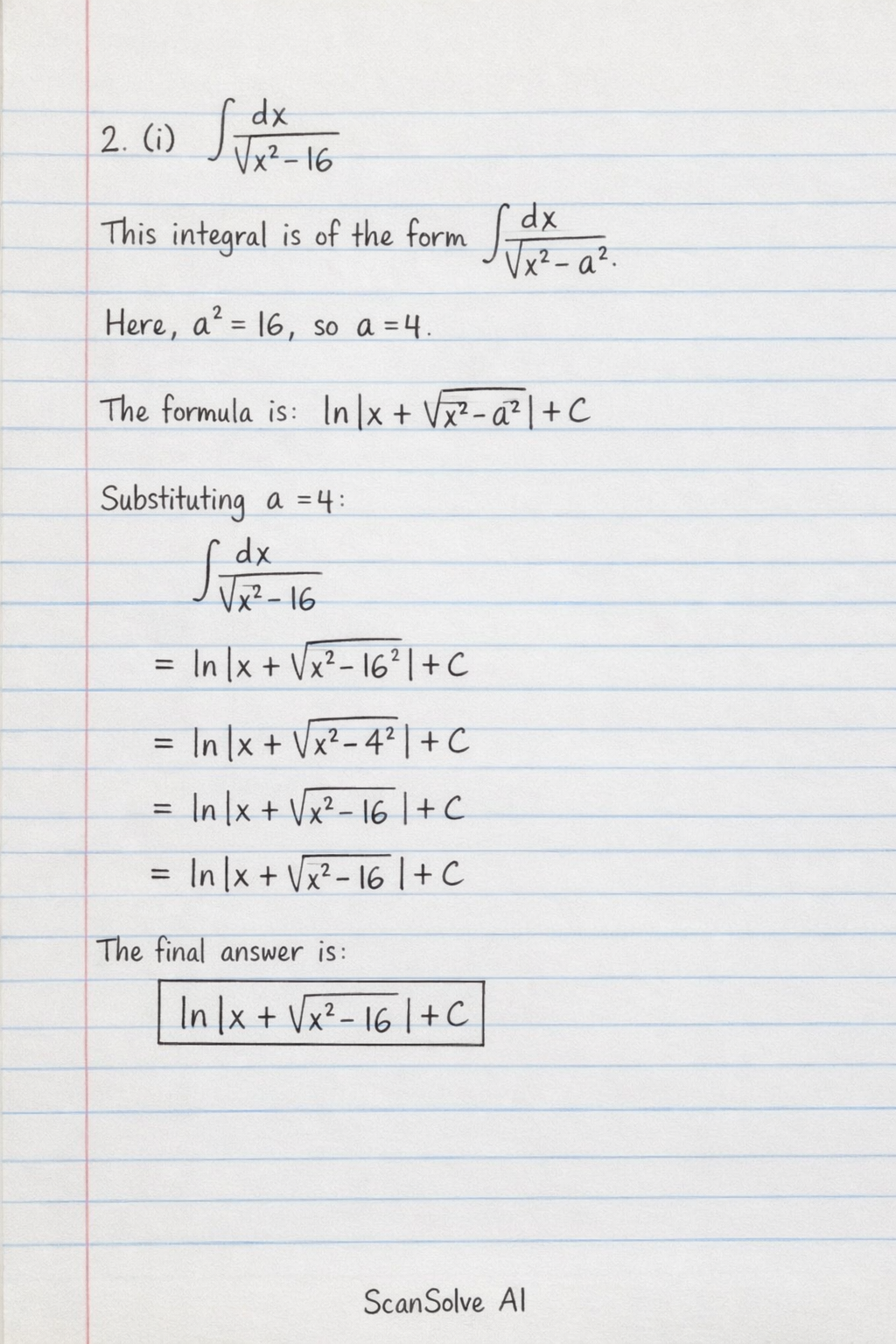 2. (i) integral (dx)/(sqrt(x^2 - 16))