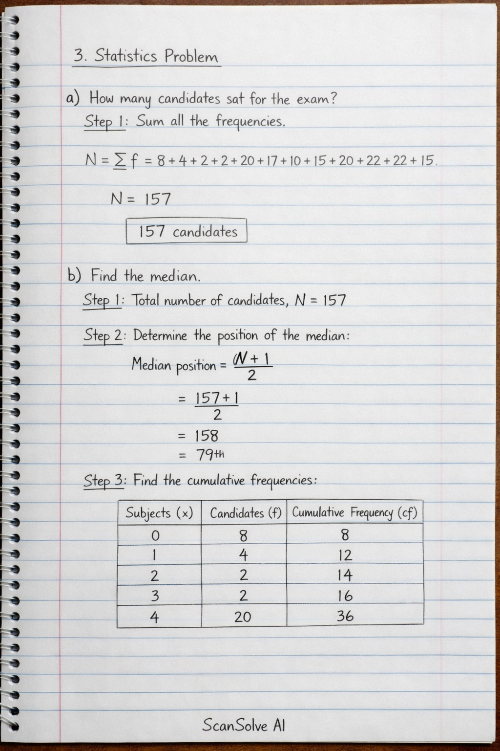Step 1: Sum all the frequencies (number of candidates).