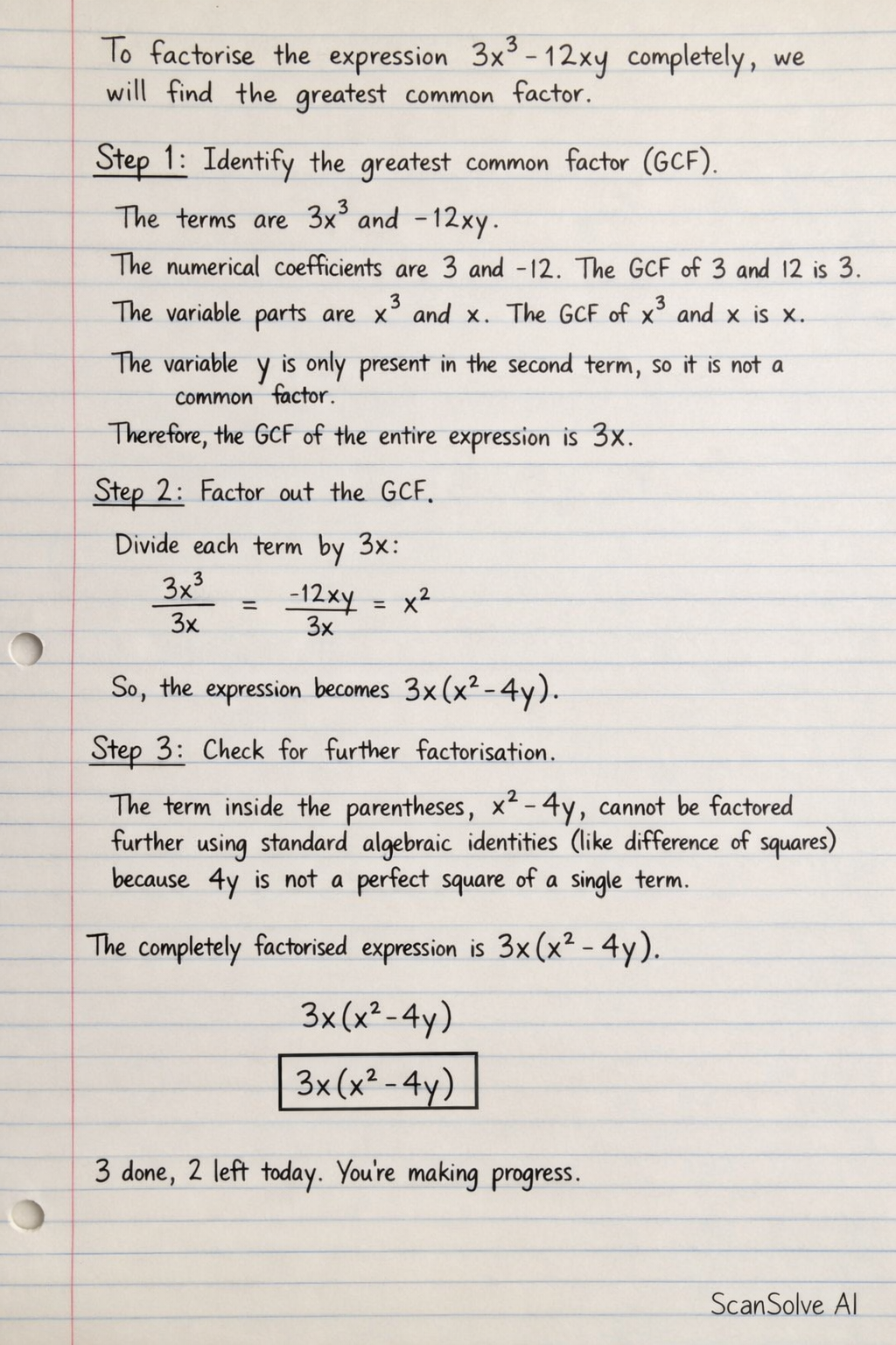 Step 3: Check for further factorisation.