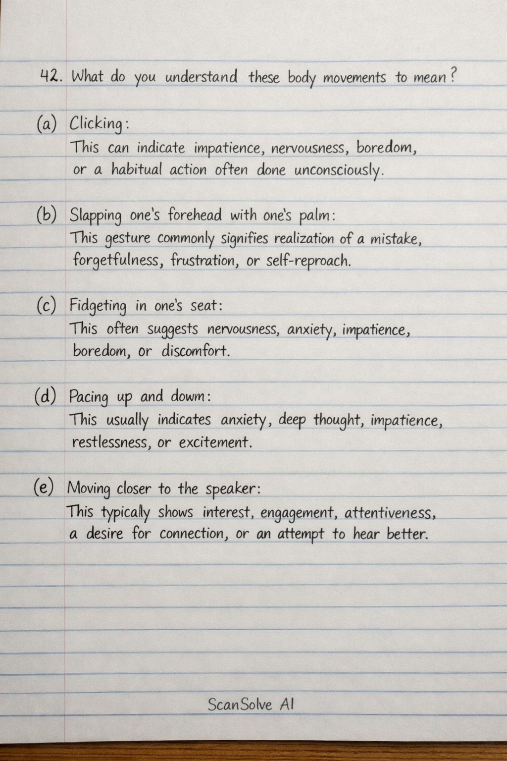 42. What do you understand these body movements to mean?