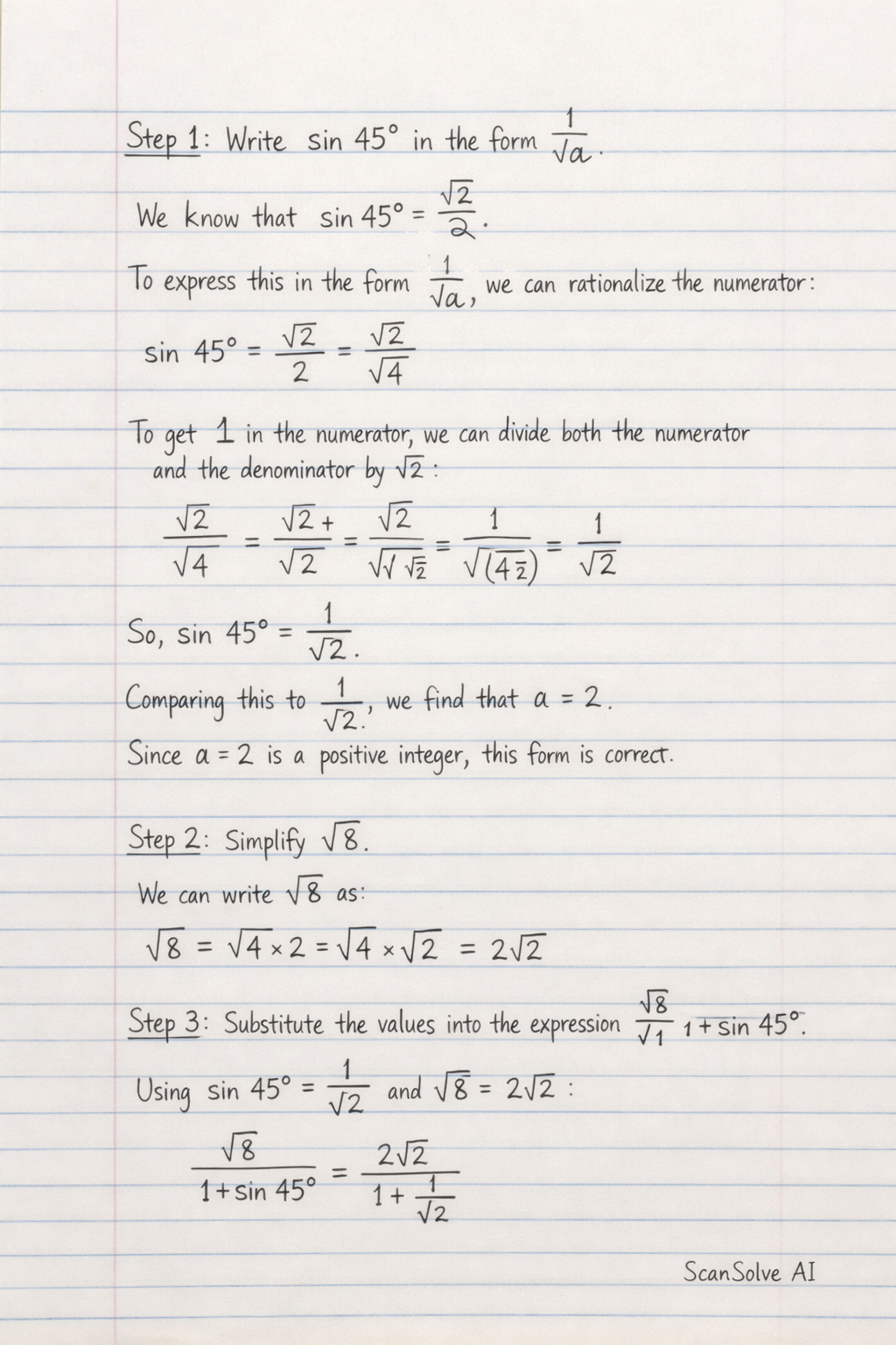 Write 45^ in the form (1)/(sqrt(a)). We know that 45^ = sqrt(2)2.