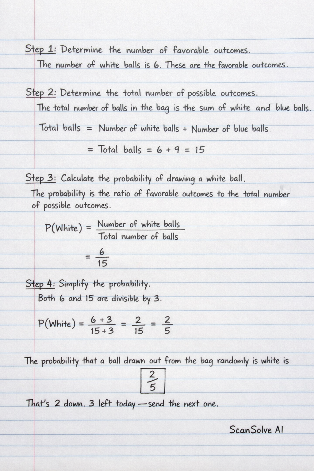 Step 3: Calculate the probability of drawing a white ball.