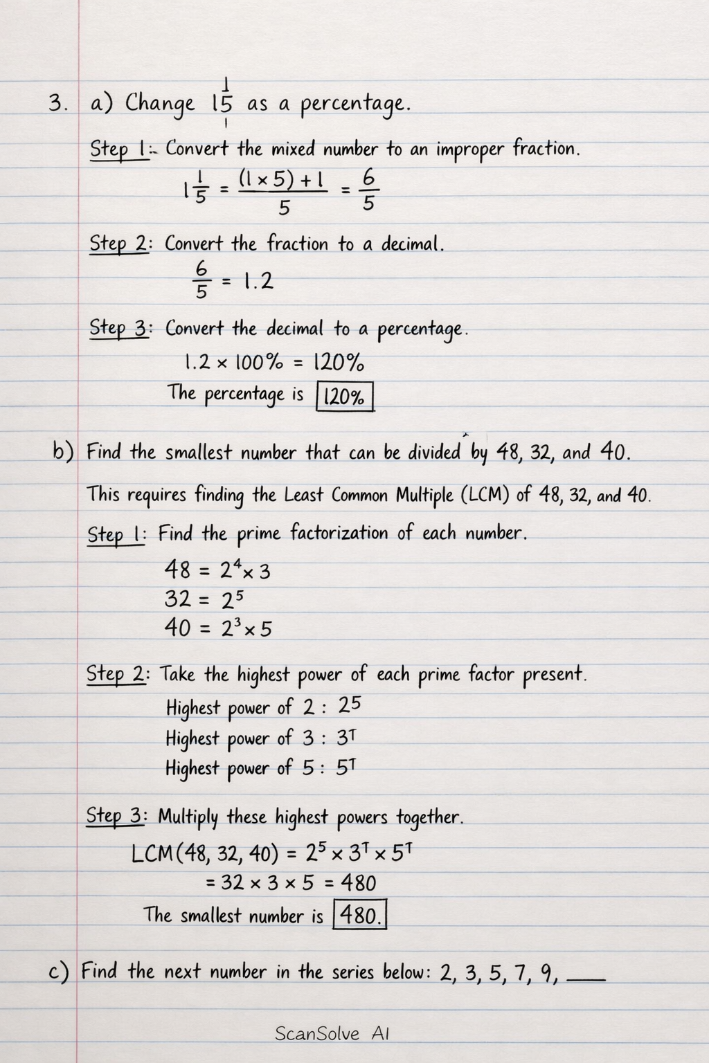 b) Find the smallest number that can be divided by 48,32 and 40.