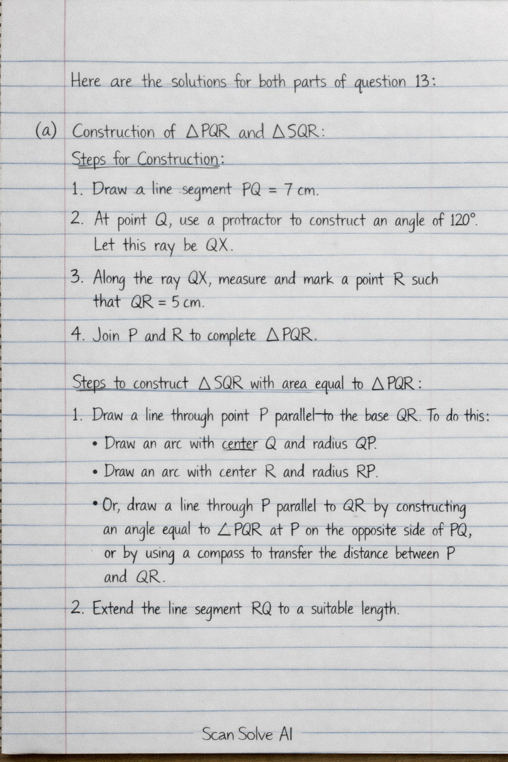 a) Construction of △PQR and △SQR: