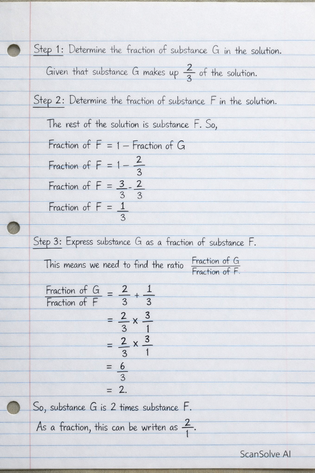 So, substance G is 2 times substance F. As a fraction, this can be written as 12.