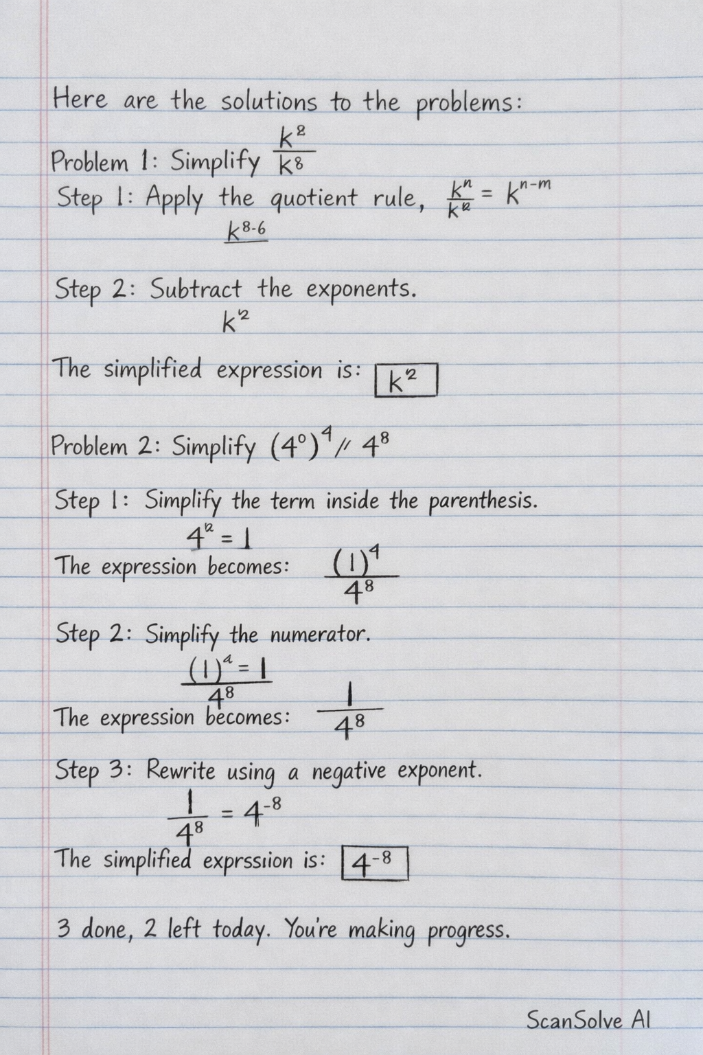 Step 1: Apply the quotient rule for exponents, which states anam=am−n.