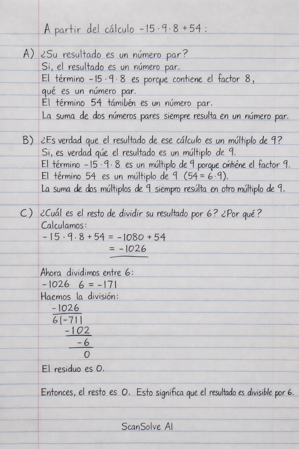 C) ¿Cuál es el resto de dividir su resultado por 6? ¿Por qué?