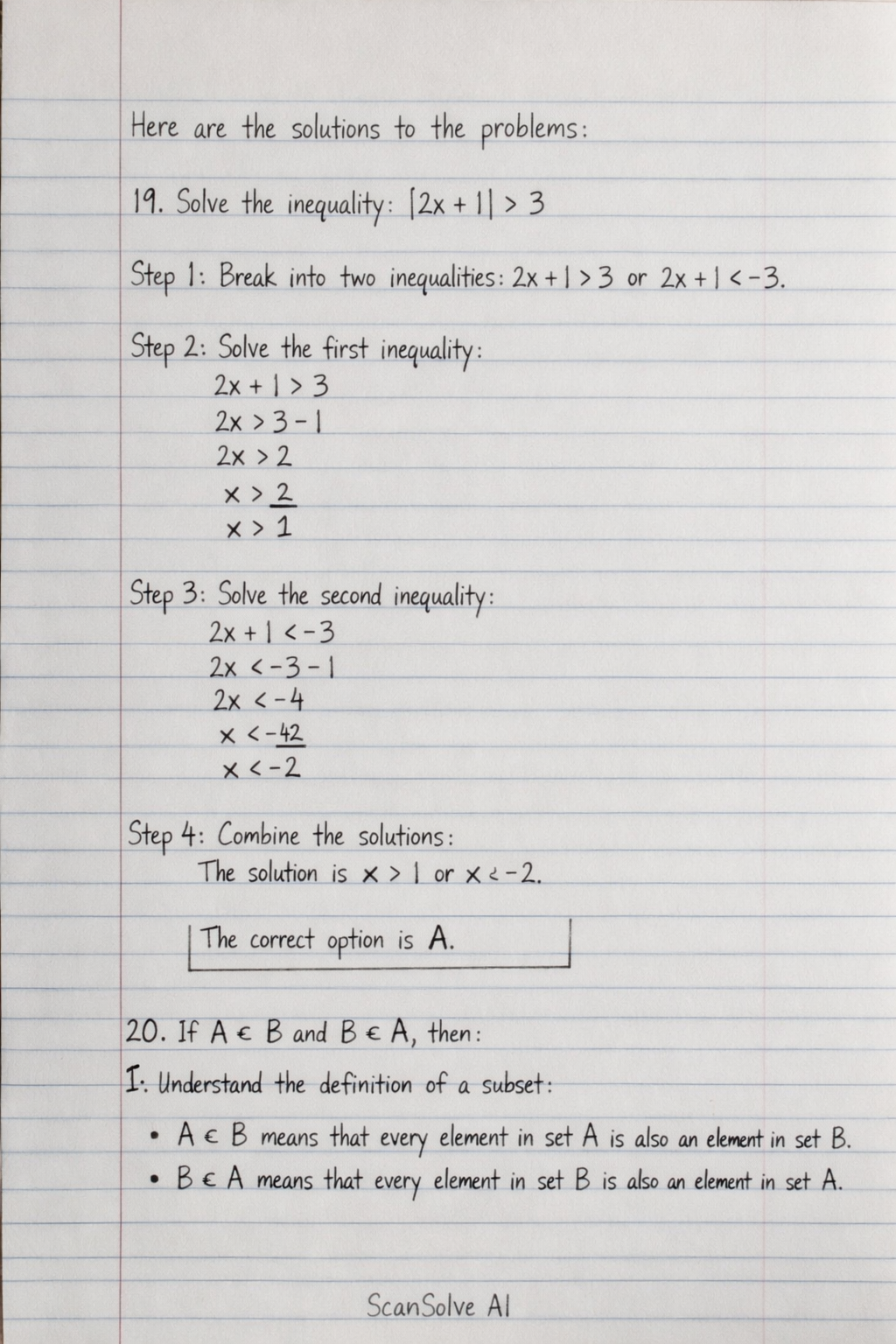 20. If A⊆B and B⊆A, then: