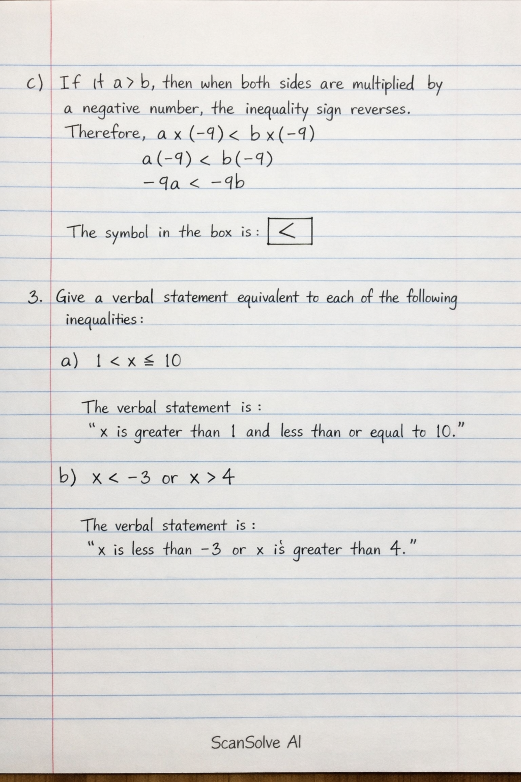 c) If a > b, then when both sides are multiplied by a negative number, the inequality sign reverses.