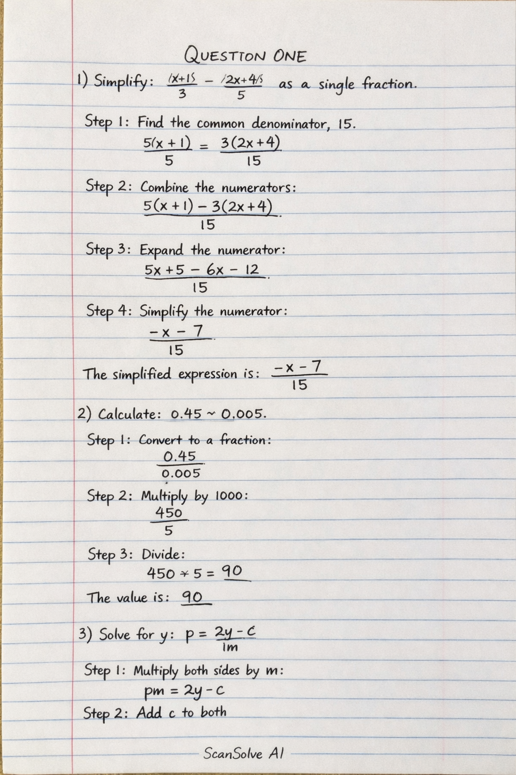 Handwritten Step-by-Step Solution