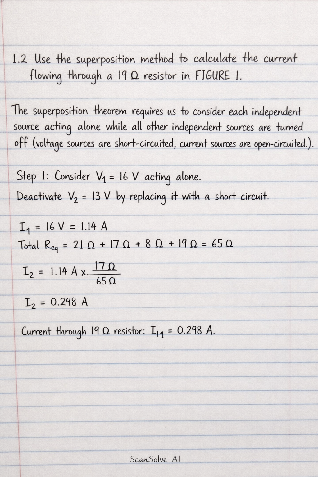 1.2 Use the superposition method to calculate the current flowing through a 19Ω resistor in FIGURE 1.