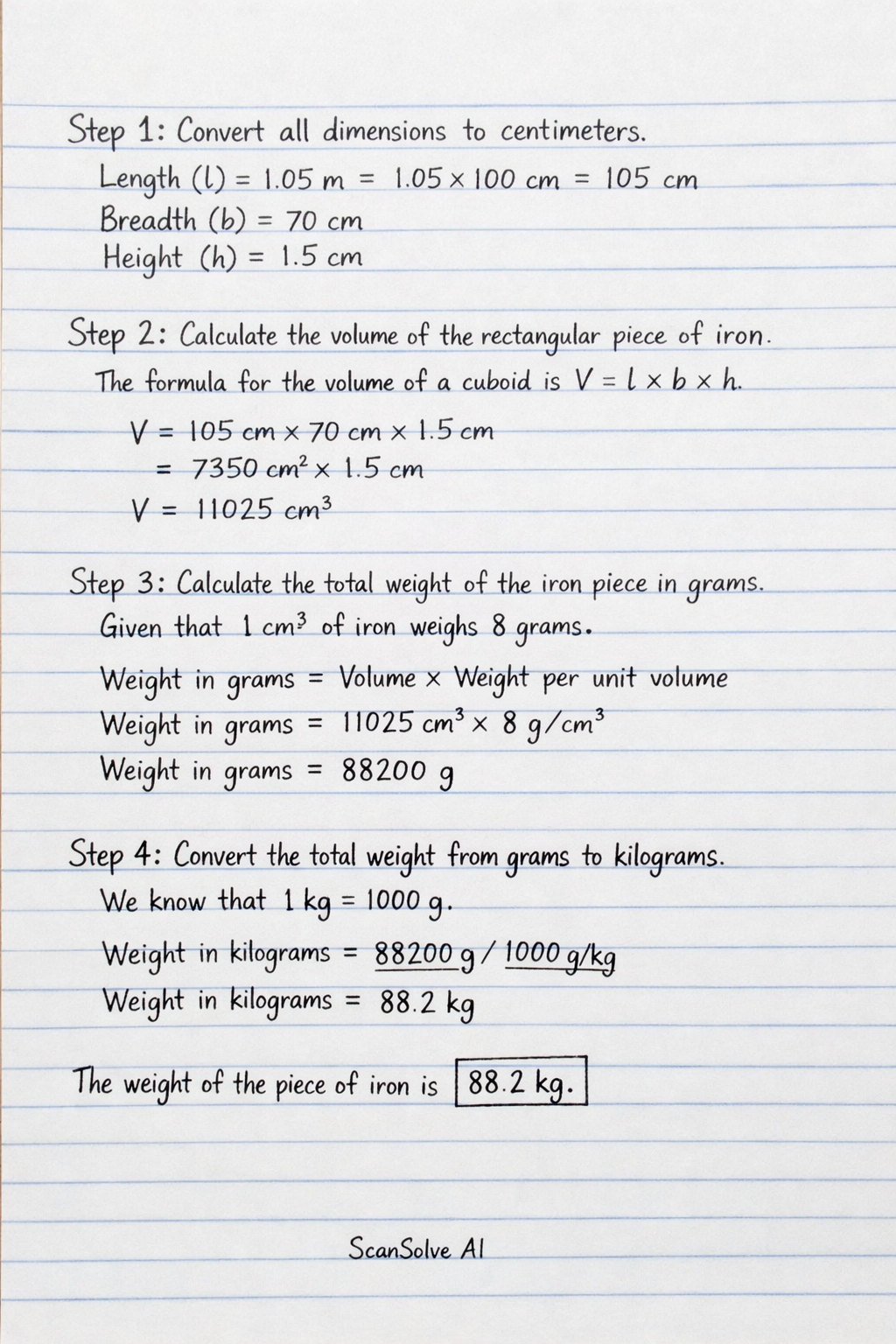 Step 2: Calculate the volume of the rectangular piece of iron.