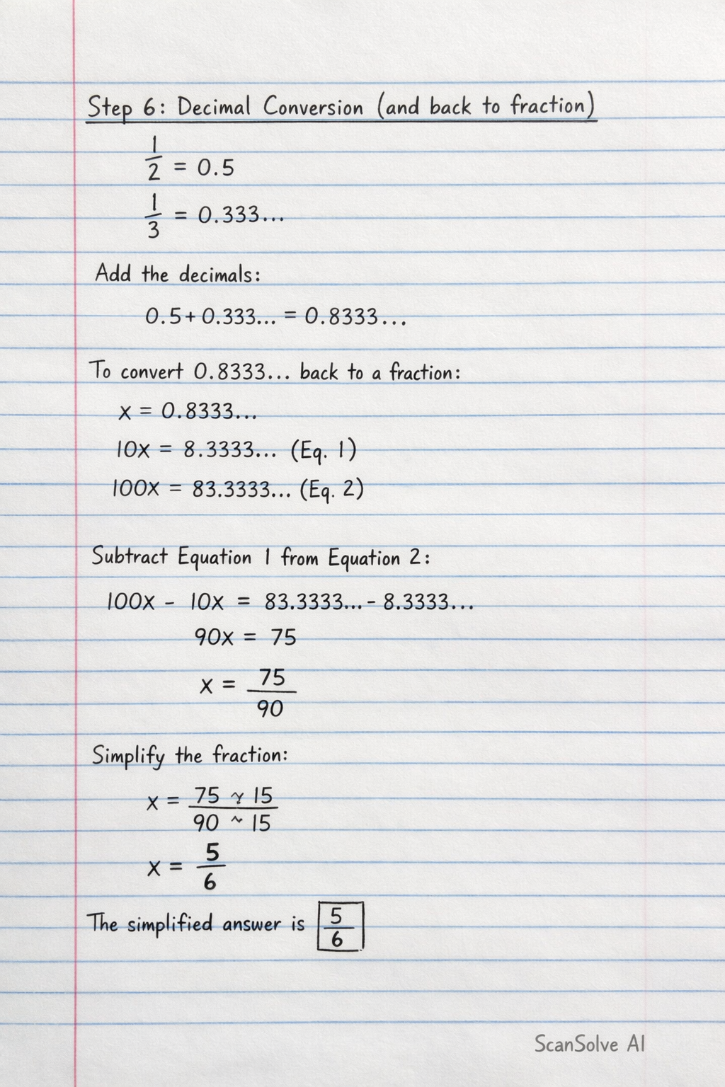 To convert 0.8333... back to a fraction: