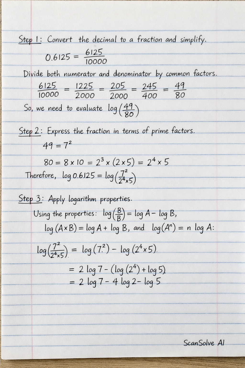 log0.6125=log(24×572)