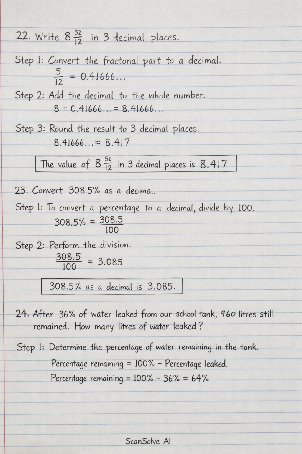 24. After 36% of water leaked from our school tank, 960 litres still remained. How many litres of water leaked?