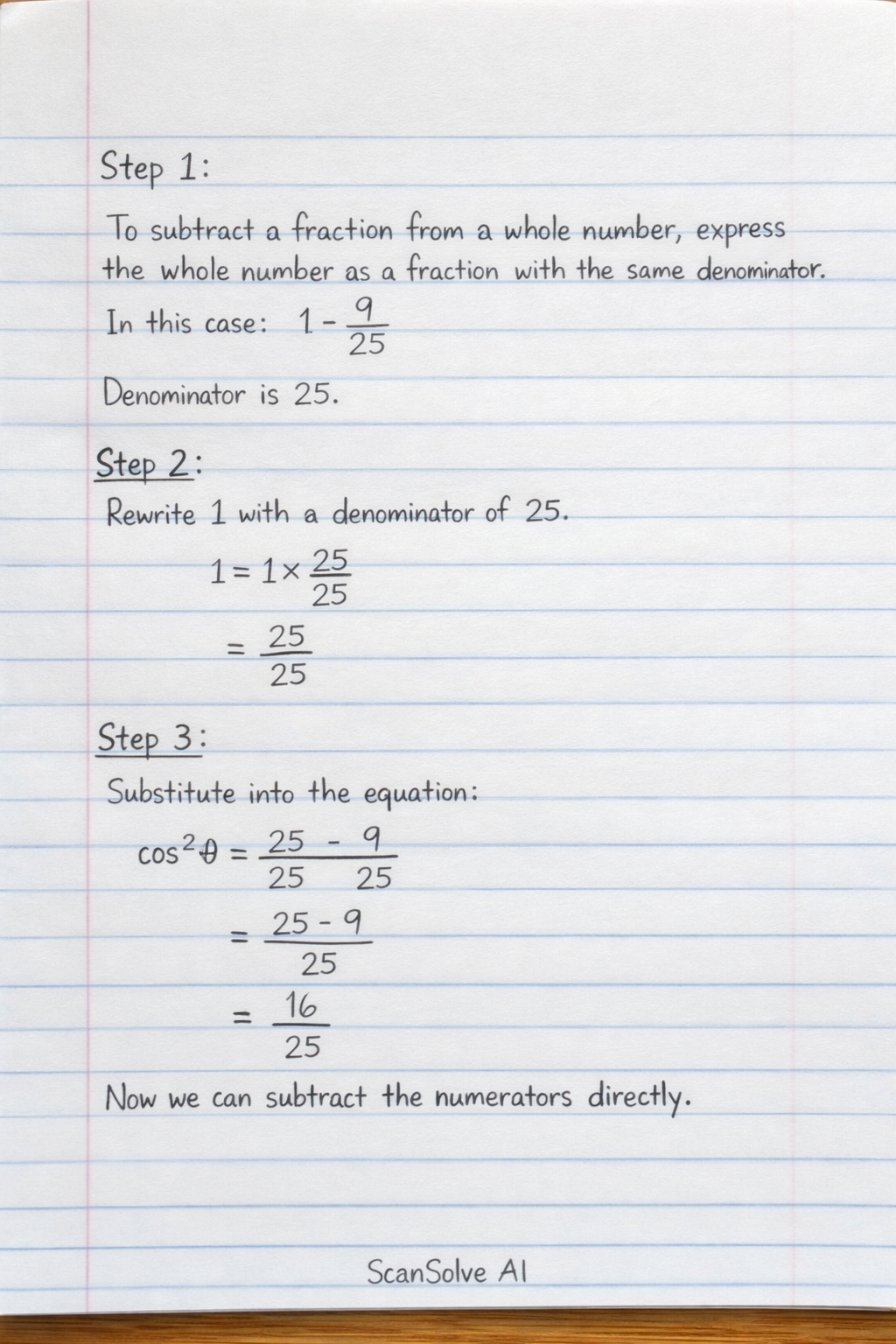 This allows for direct subtraction of the numerators.