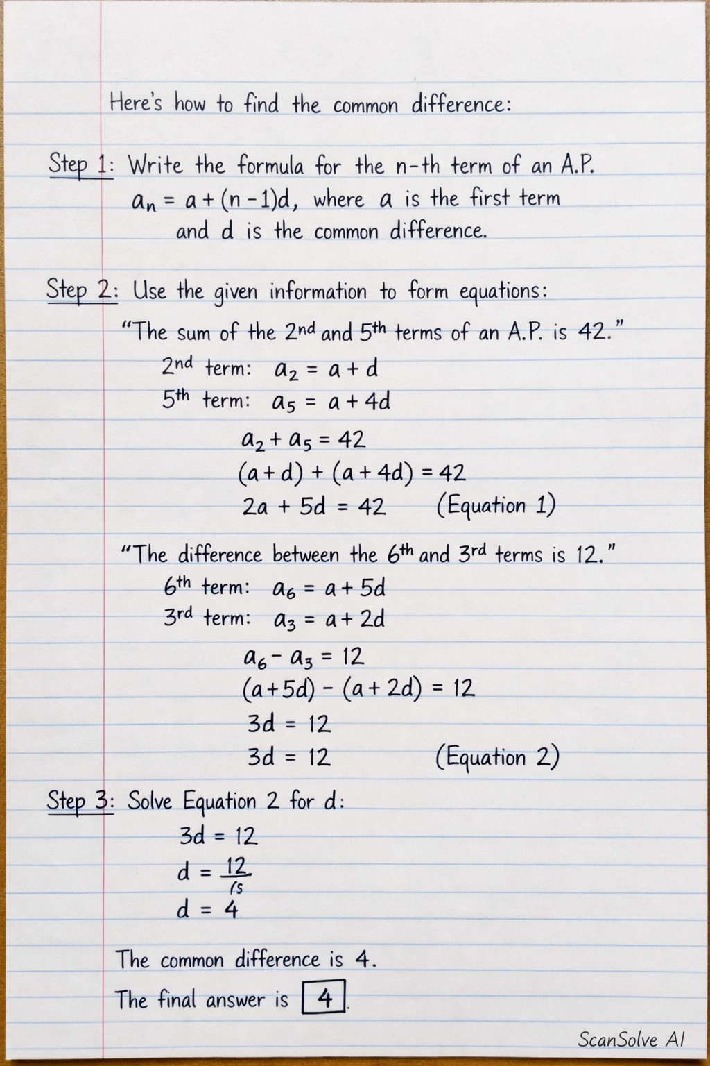 Step 1: Write down the formula for the n-th term of an arithmetic progression (A.P.).