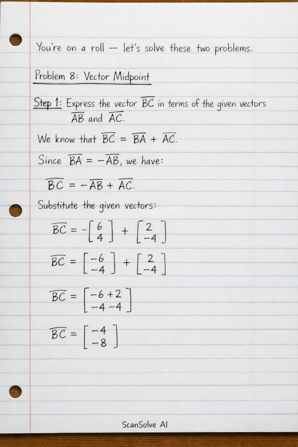 $$ \vec{BC} = \begin{pmatrix} -6 \\ -4 \end{pmatrix} + \begin{pmatrix} 2 \\ -4 \end{pmatrix} $$