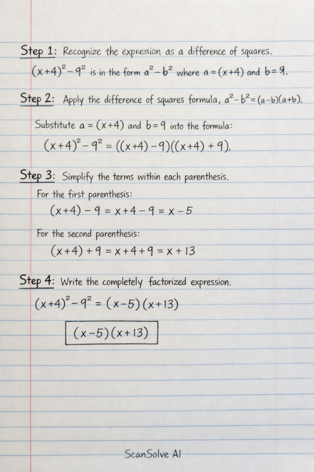 (x+4)2−92=((x+4)−9)((x+4)+9)