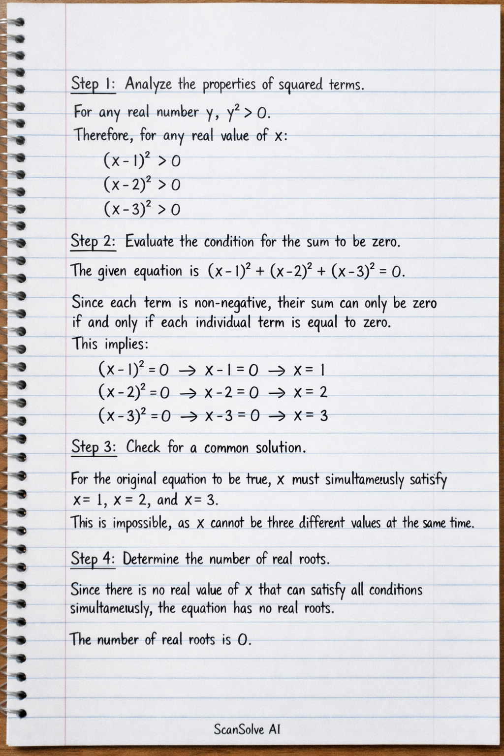 Step 4: Determine the number of real roots.