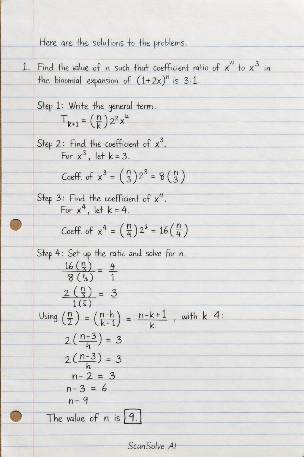 2. The first three terms of the expansion of (1+ax)n is 1+2x+815x2+.... Find the value of a and n.