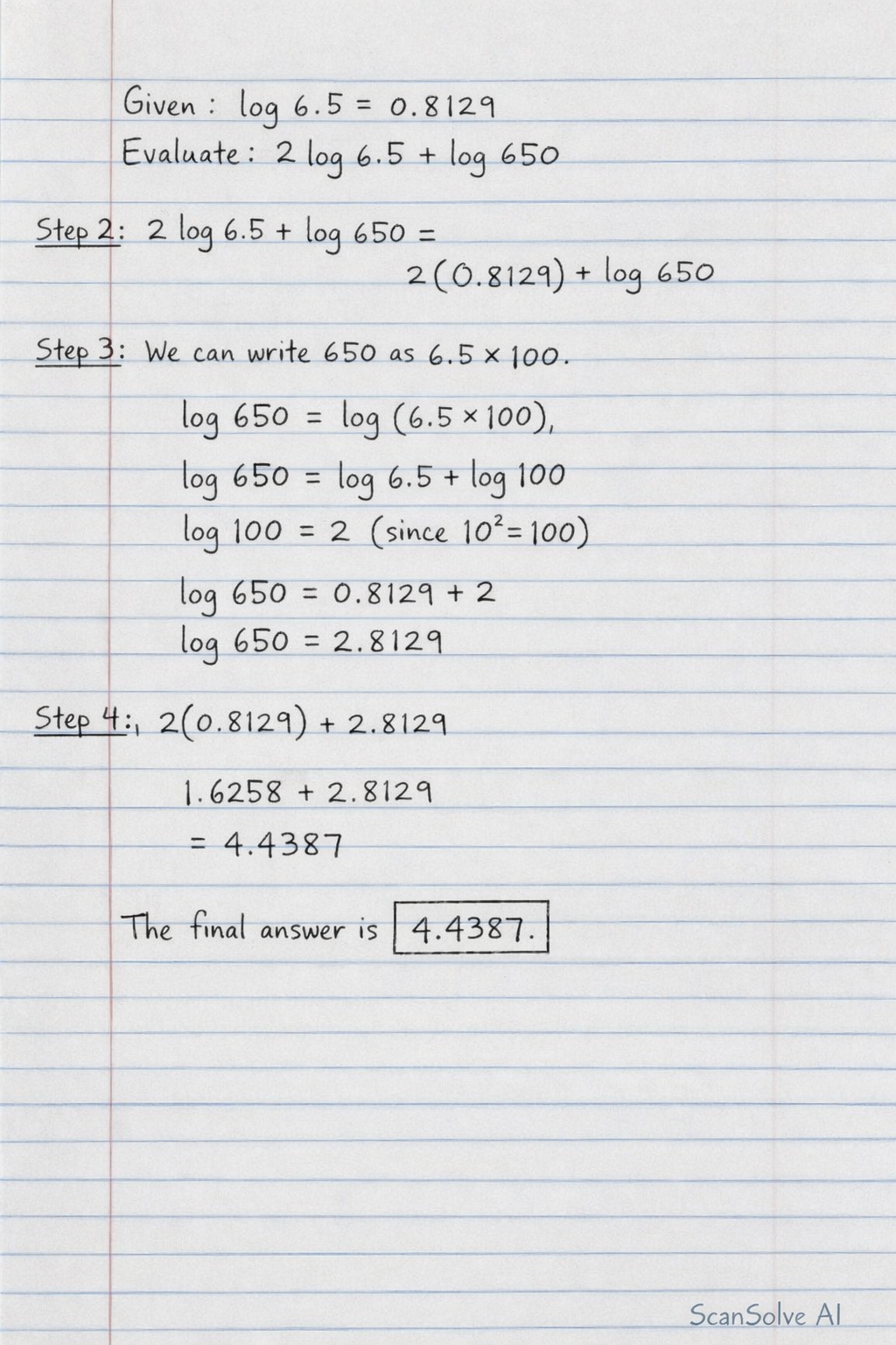 Step 4: Substitute the value of log650 back into the expression and calculate.