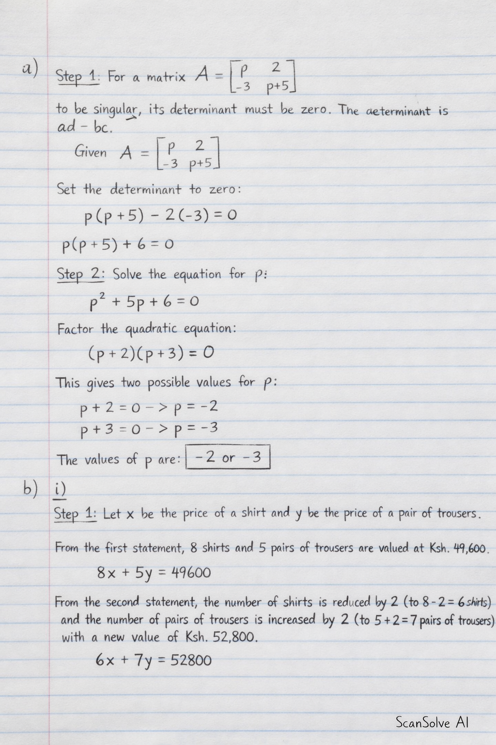 Step 1: To determine the price of each item, we need to solve the matrix equation from part (b)(i).