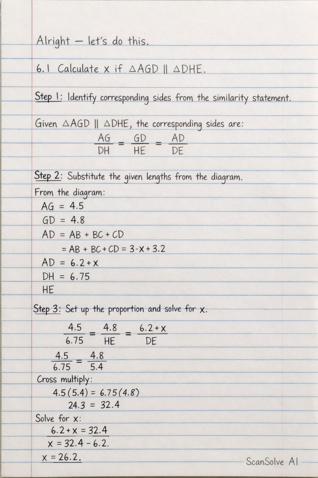 Given AGD ||| DHE, the corresponding sides are:
