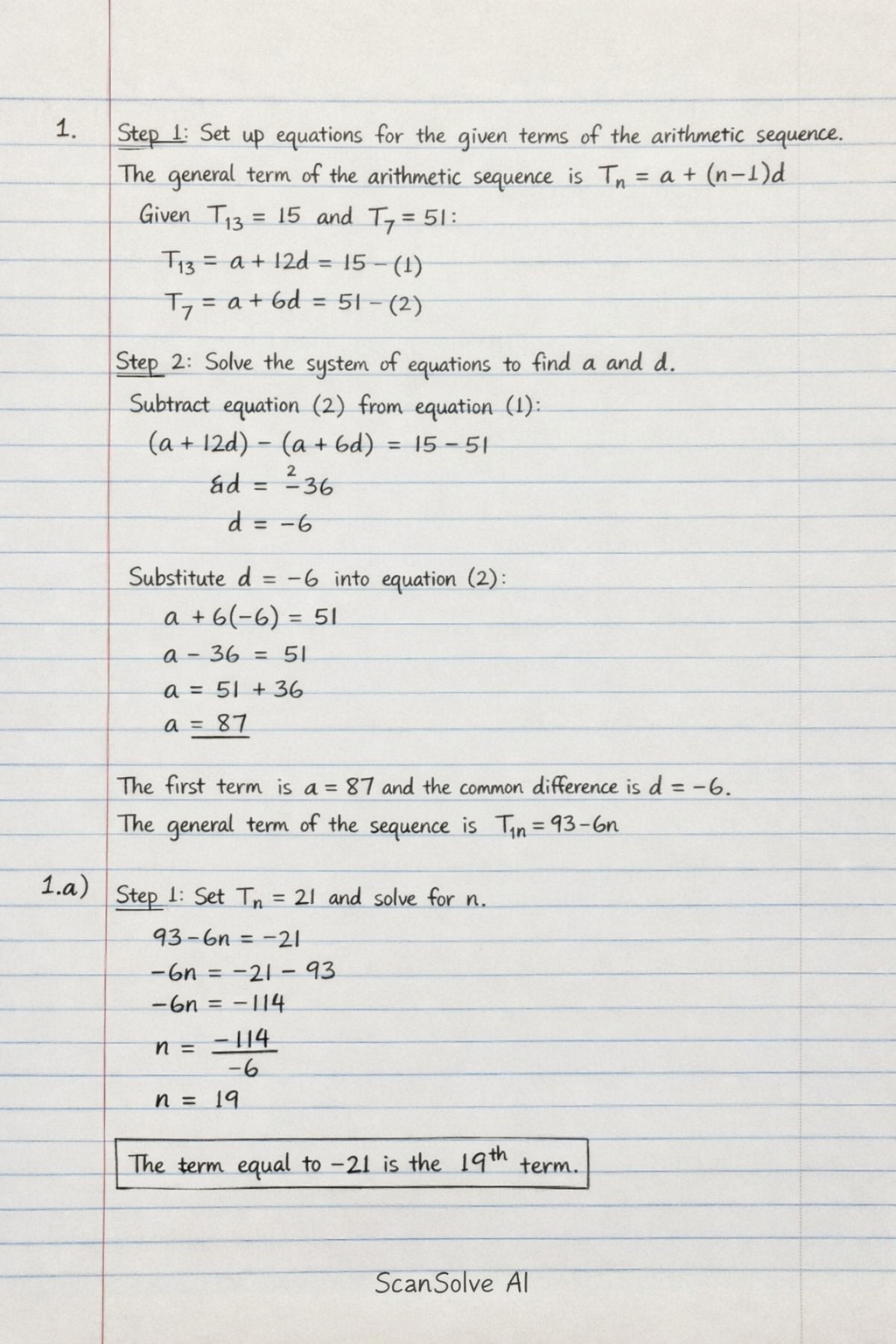 Step 1: Set Tn=−21 and solve for n.