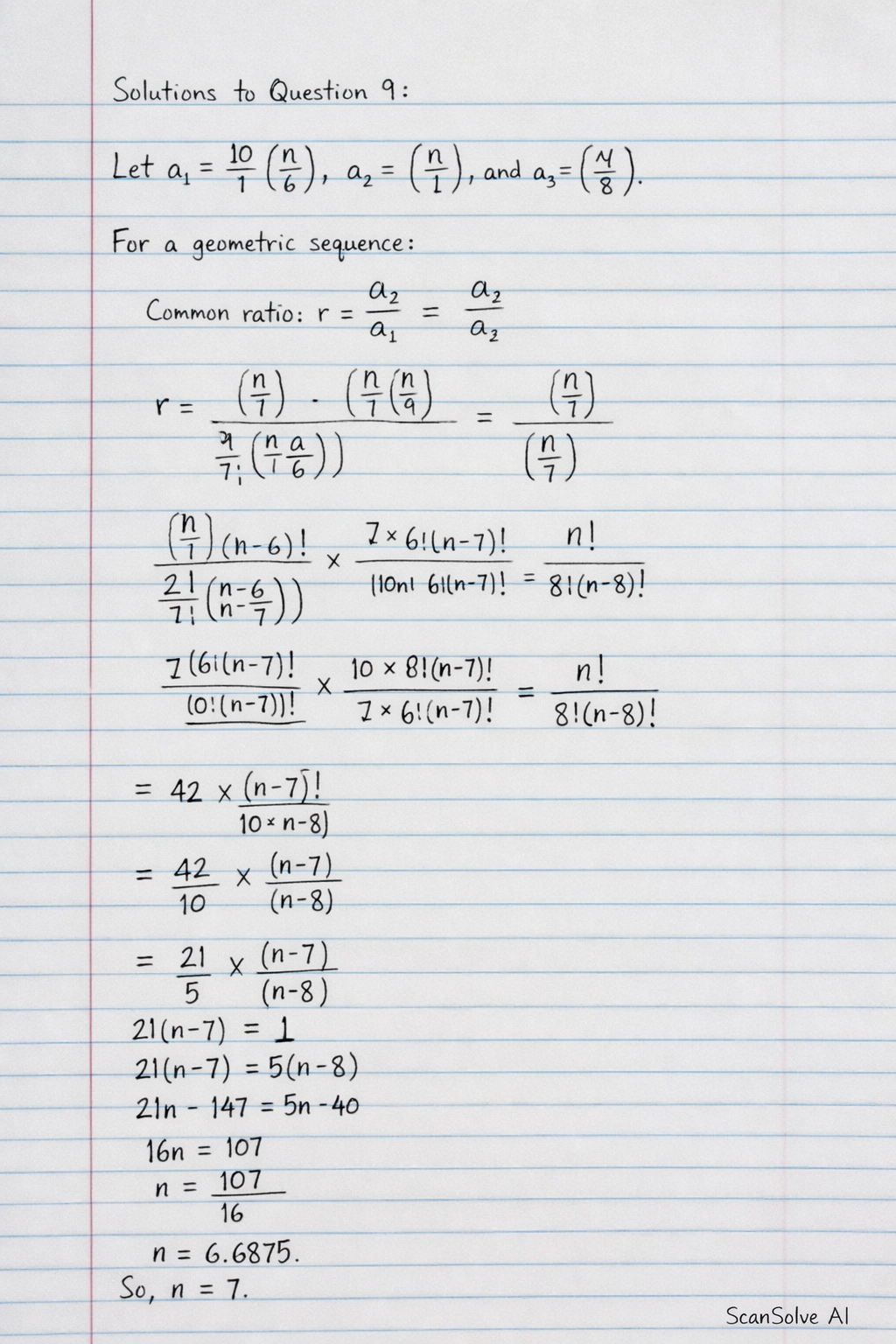 Given that (10)/(7) n6, n7, and n8 are the first three consecutive terms of a geometric sequence (G.P.).