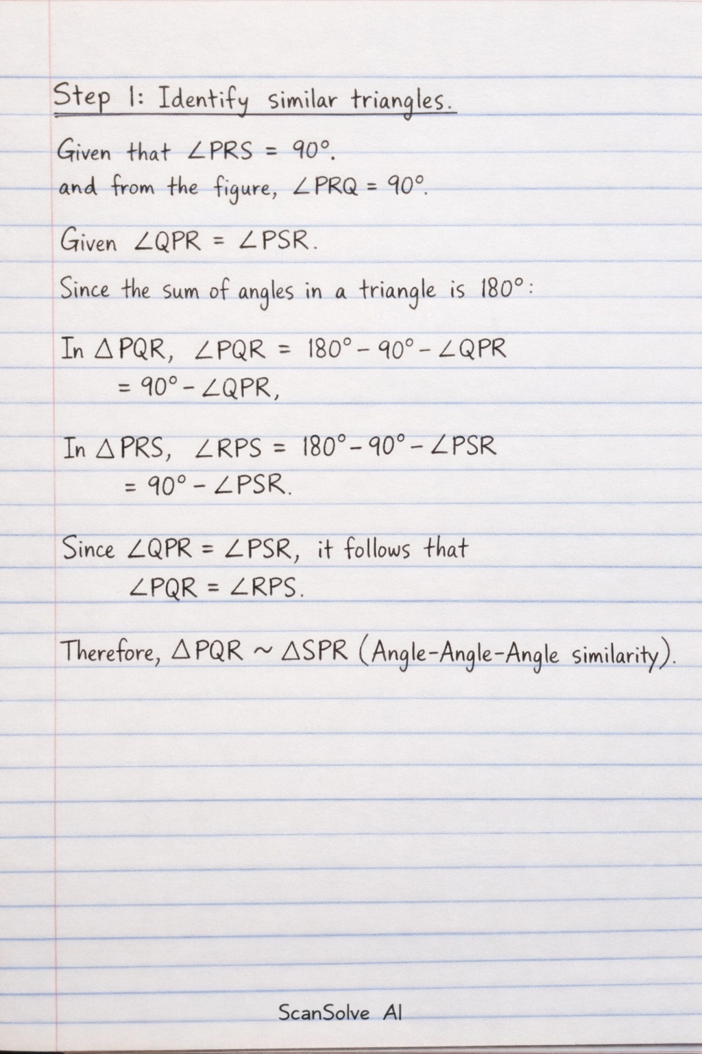 Therefore, △PQR is similar to △SPR (Angle-Angle-Angle similarity).