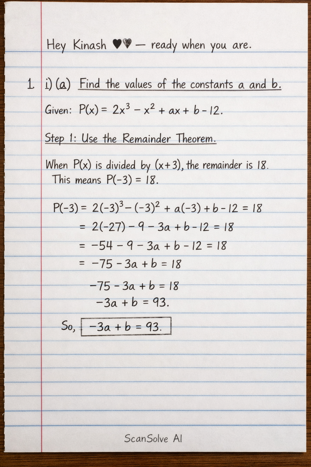 Given the polynomial P(x) = 2x^3 - x^2 + ax + b - 12.