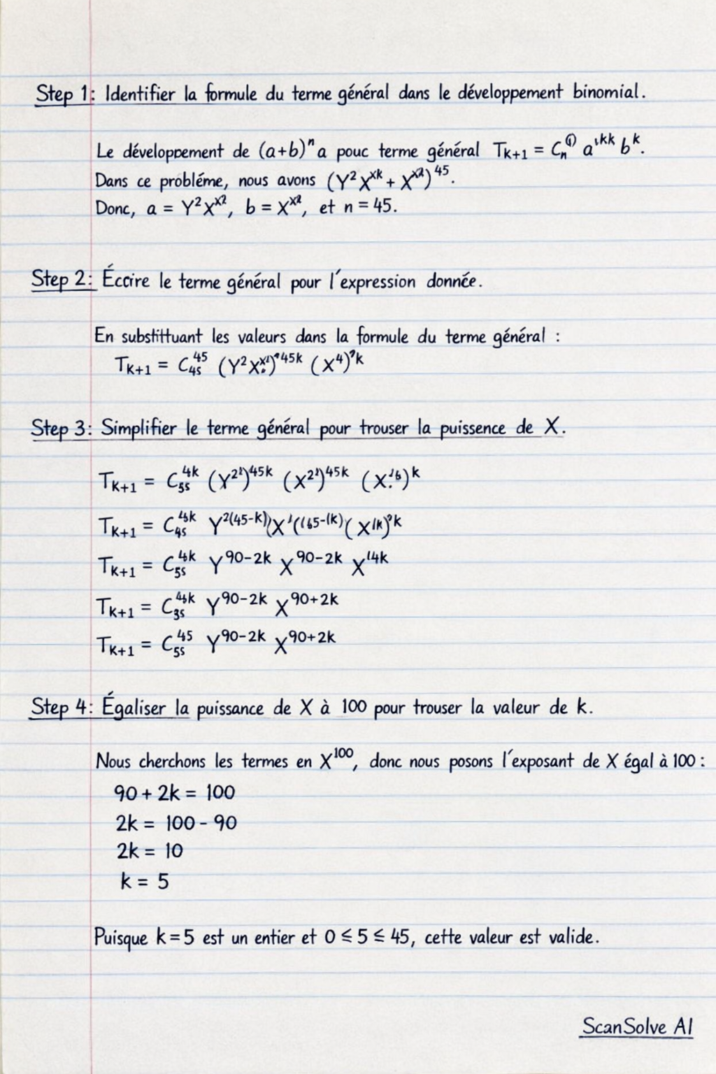 Nous cherchons les termes en X100, donc nous posons l'exposant de X égal à 100: