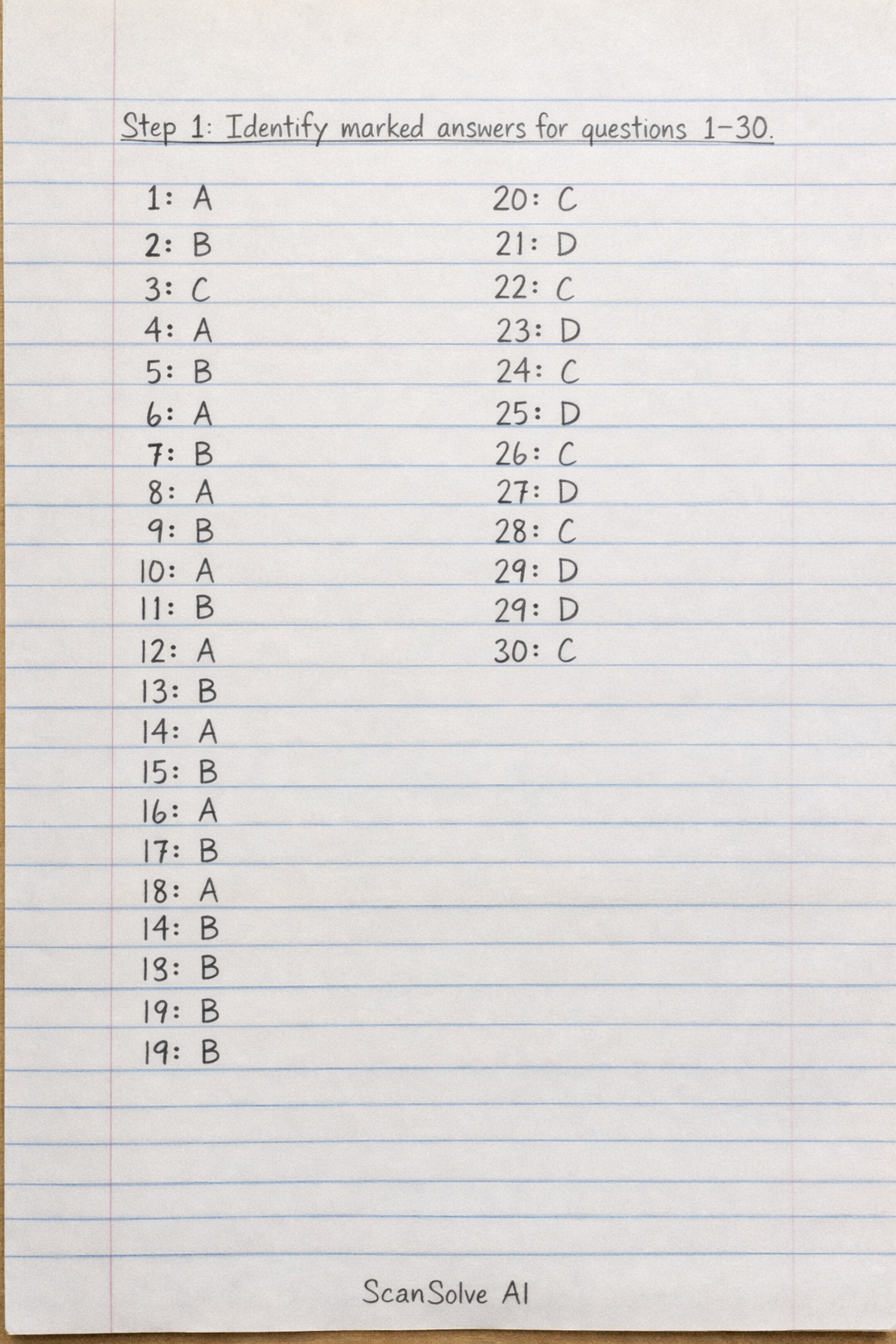 Identify marked answers for questions 1-30.