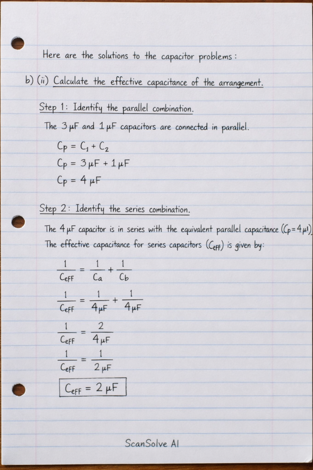 The 3 µF and 1 µF capacitors are connected in parallel.