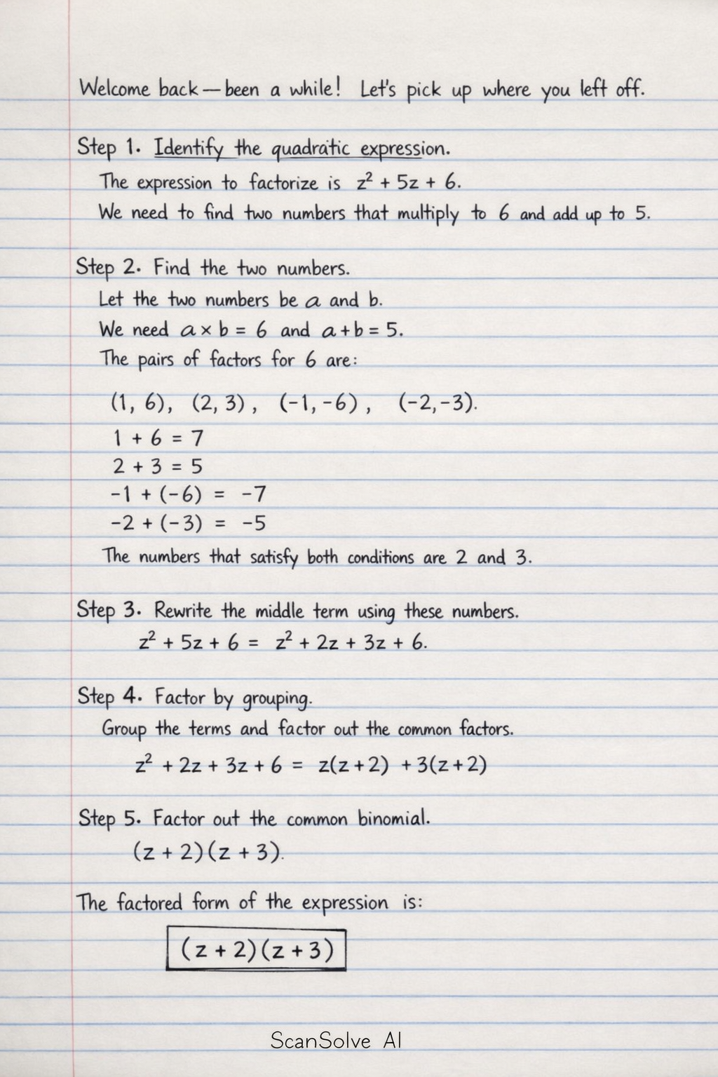 z2+5z+6=z2+2z+3z+6