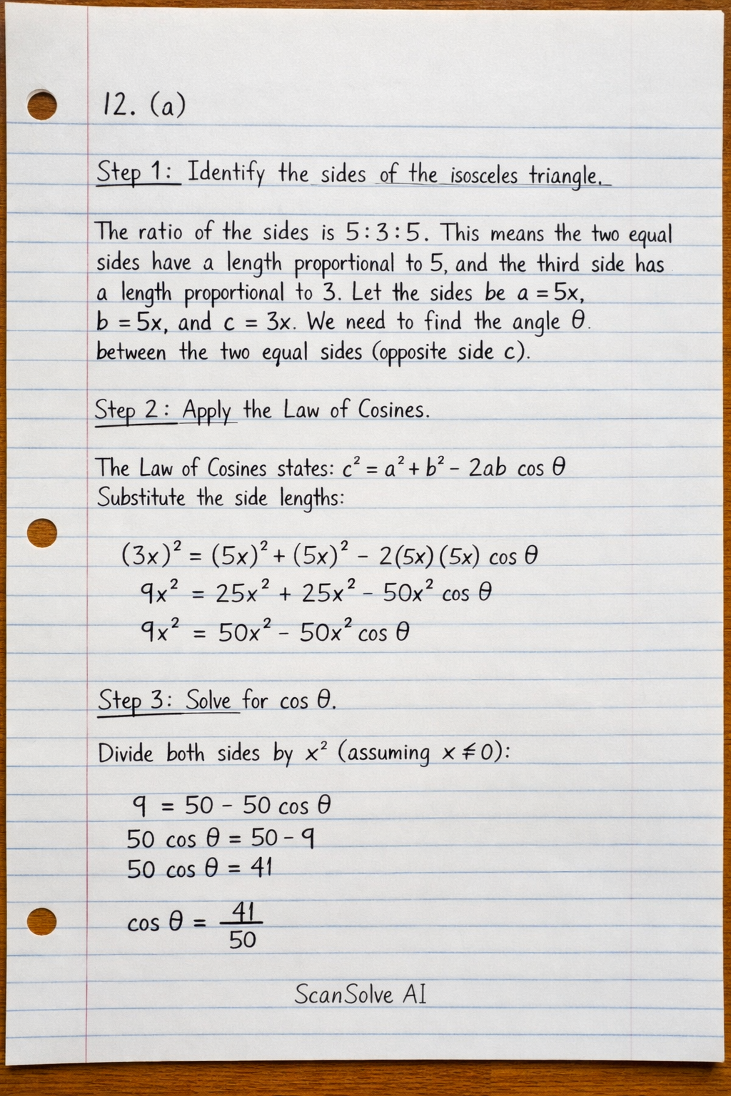 (3x)2=(5x)2+(5x)2−2(5x)(5x)cosθ