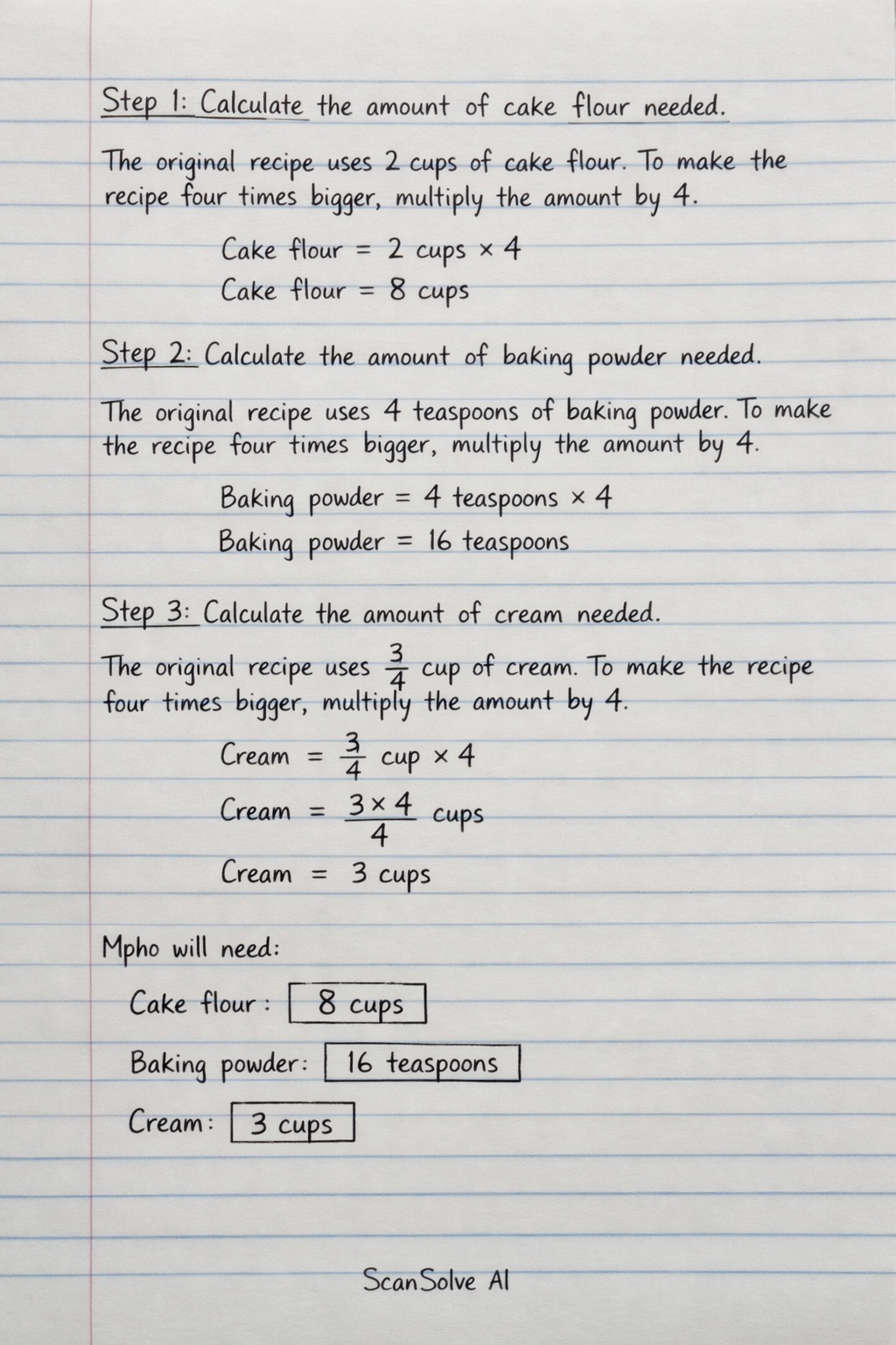 Step 2: Calculate the amount of baking powder needed.