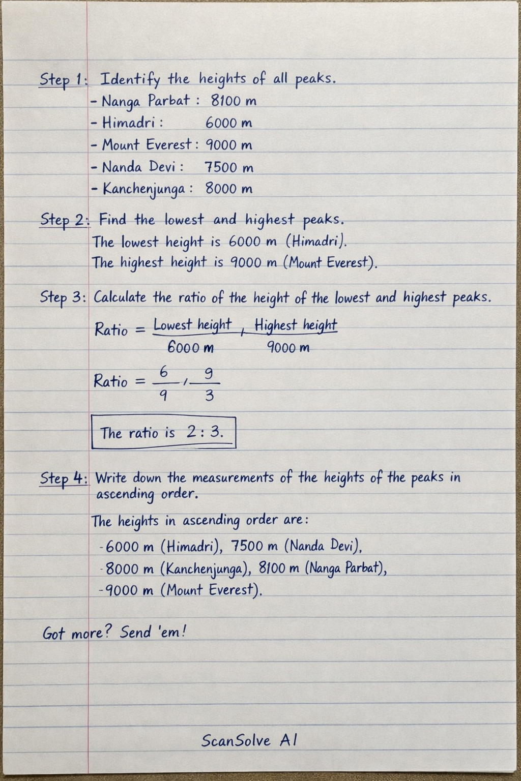 Step 4: Write down the measurement of the heights of the peaks in ascending order.