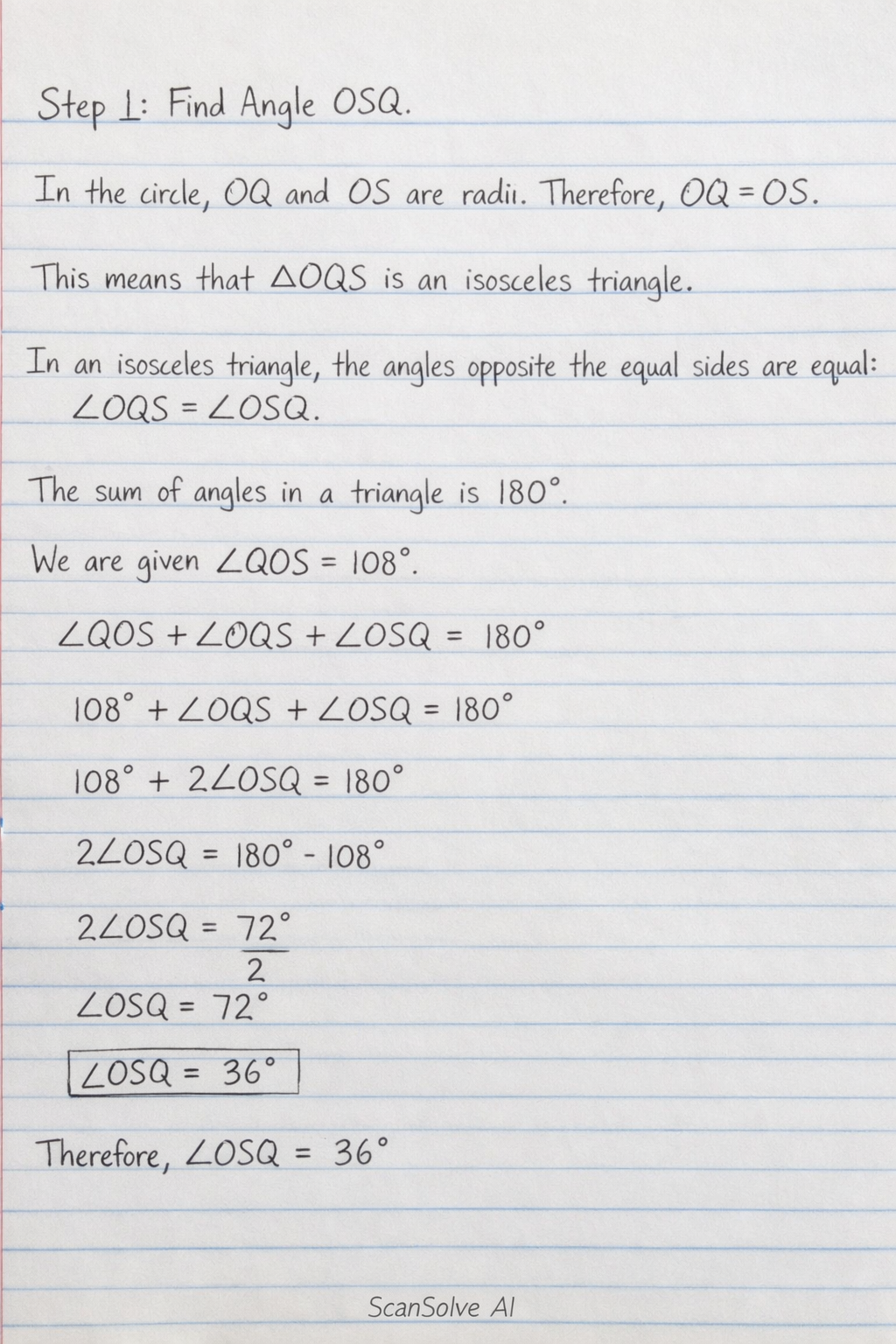 Step 1: Find Angle OSQ.