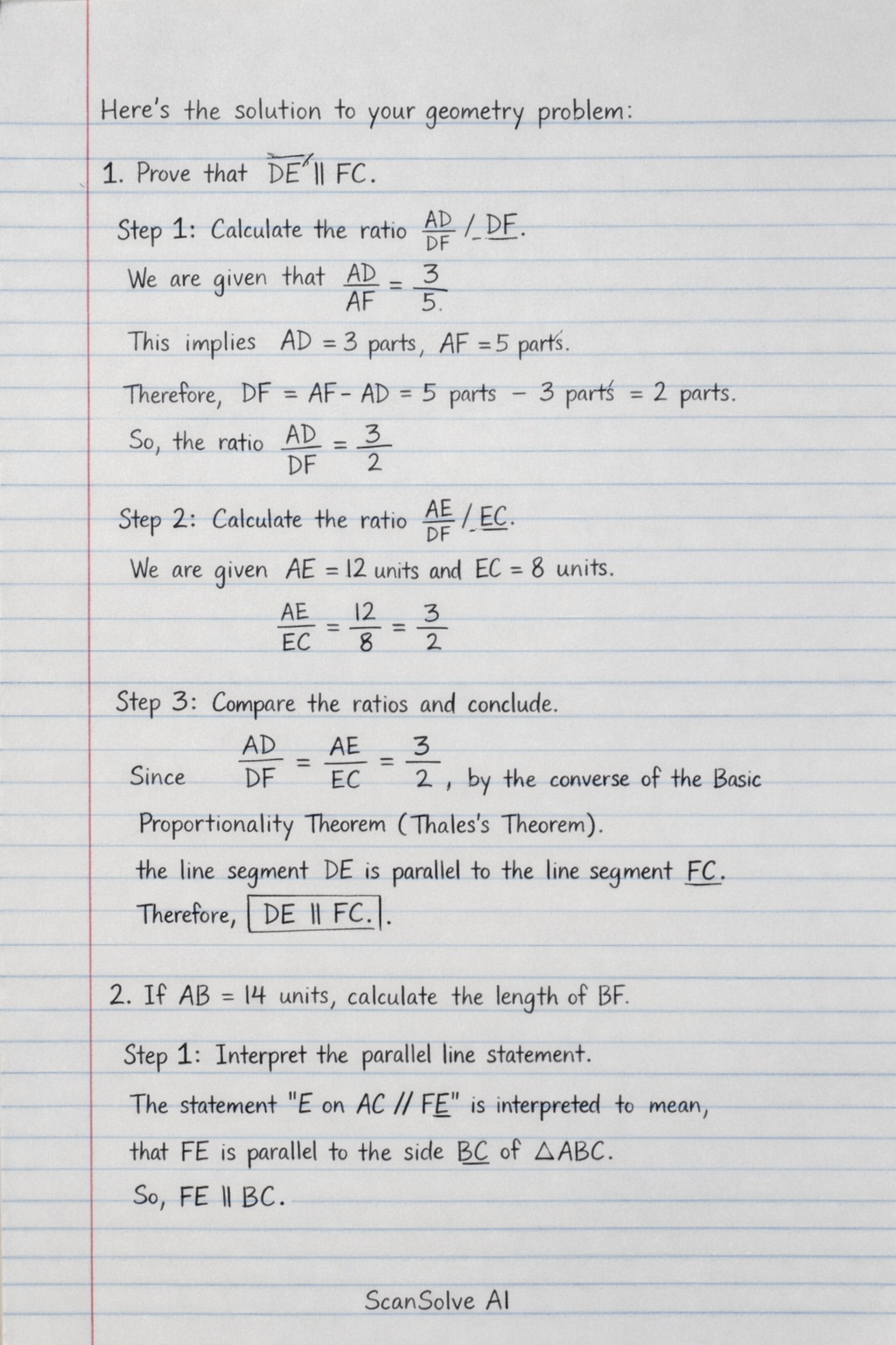 This implies that AD represents 3 parts of AF, and AF represents 5 parts.