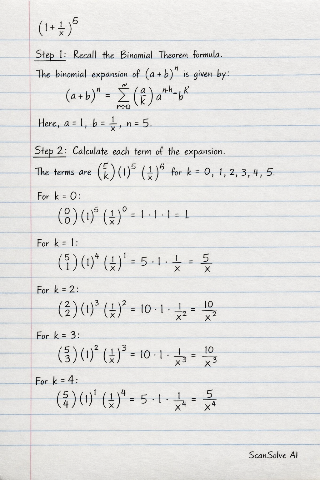 a) To write down the binomial expansion of (1+x1), a power is required. Assuming the question implies the power is 5, similar to part b), we will expand (1+x1)5.