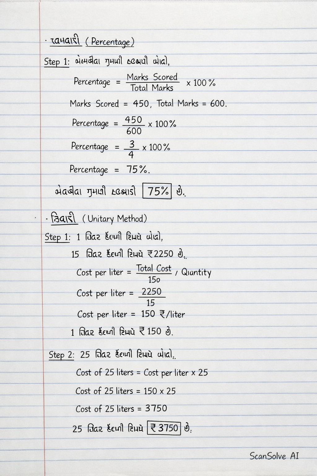 Step 1: મેળવેલા ગુણની ટકાવારી શોધો.