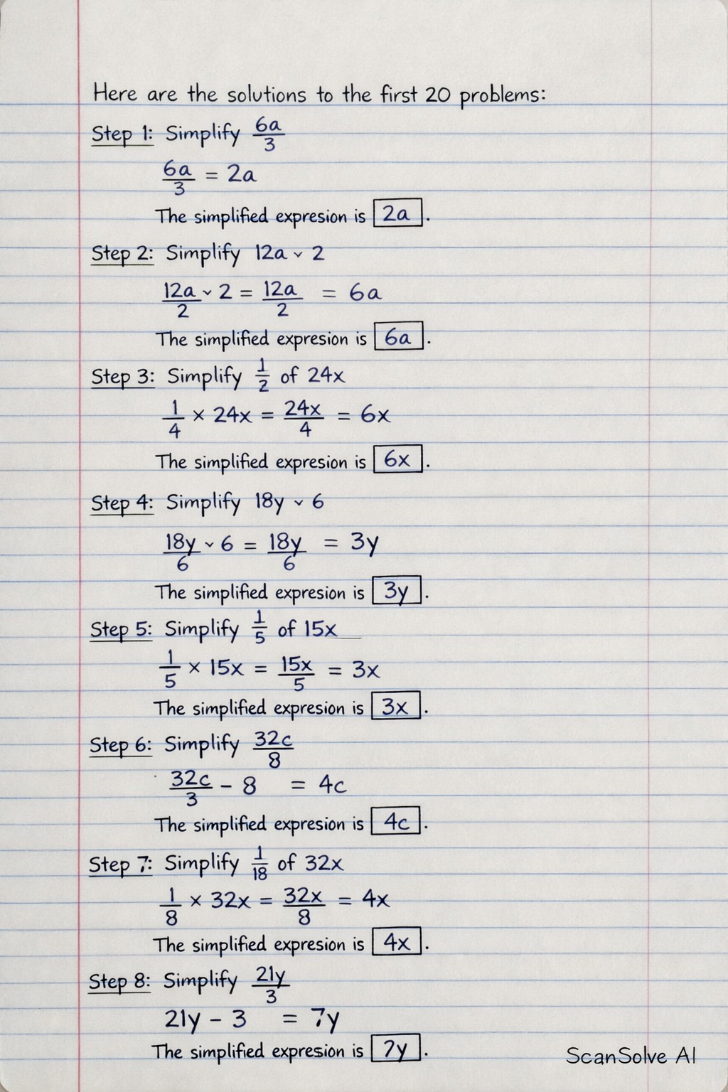 Step 7: Simplify of The simplified expression is .