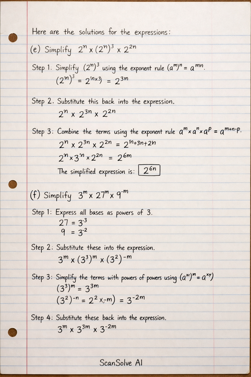Step 3: Simplify the terms with powers of powers using (ax)y=axy.