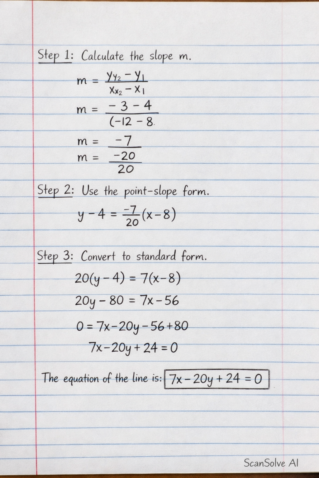 Calculate the slope m using the given points (x_1, y_1) = (8, 4) and (x_2, y_2) = (-12, -3).