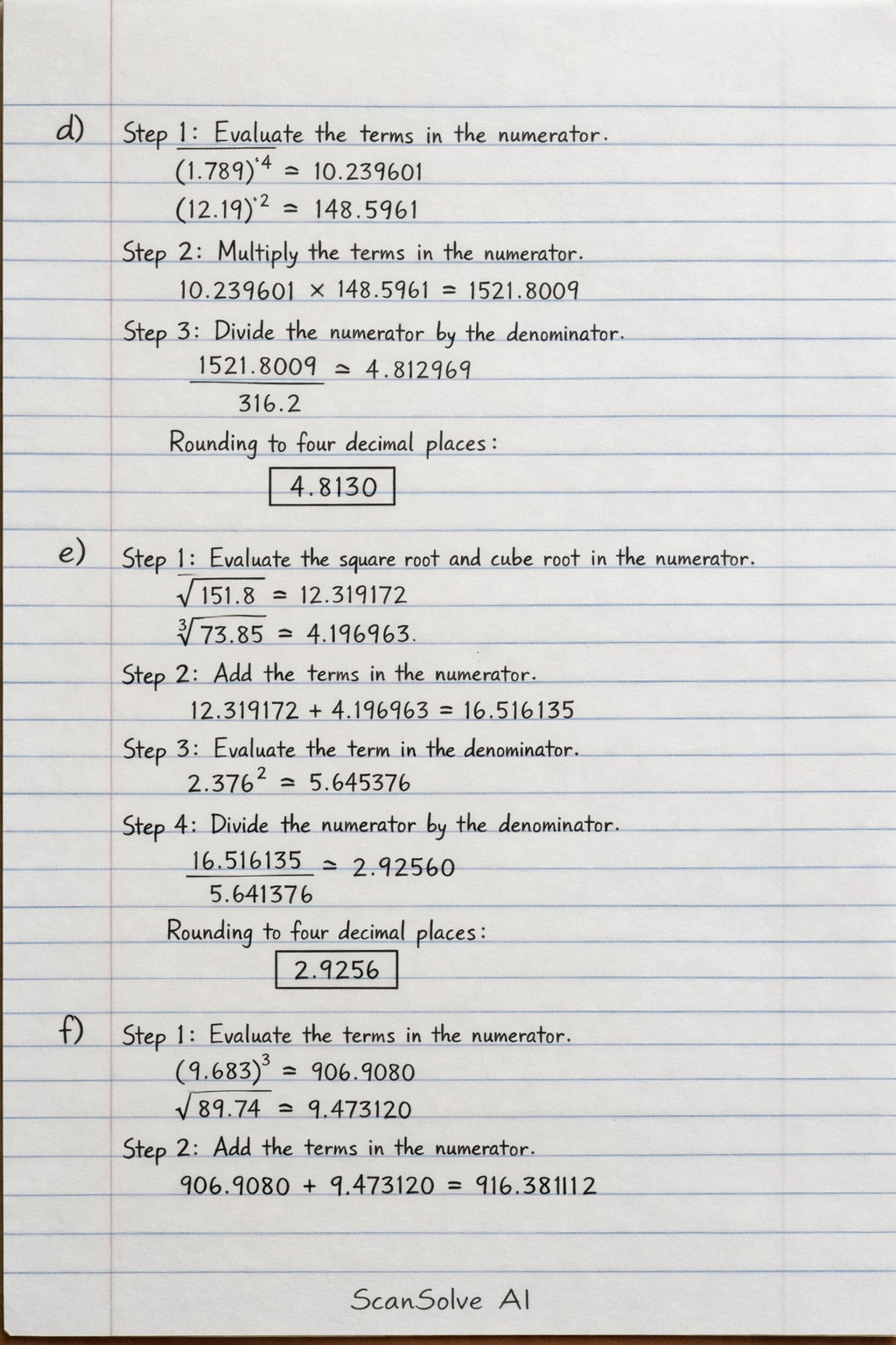 Step 4: Divide the numerator by the denominator. Rounding to four decimal places: