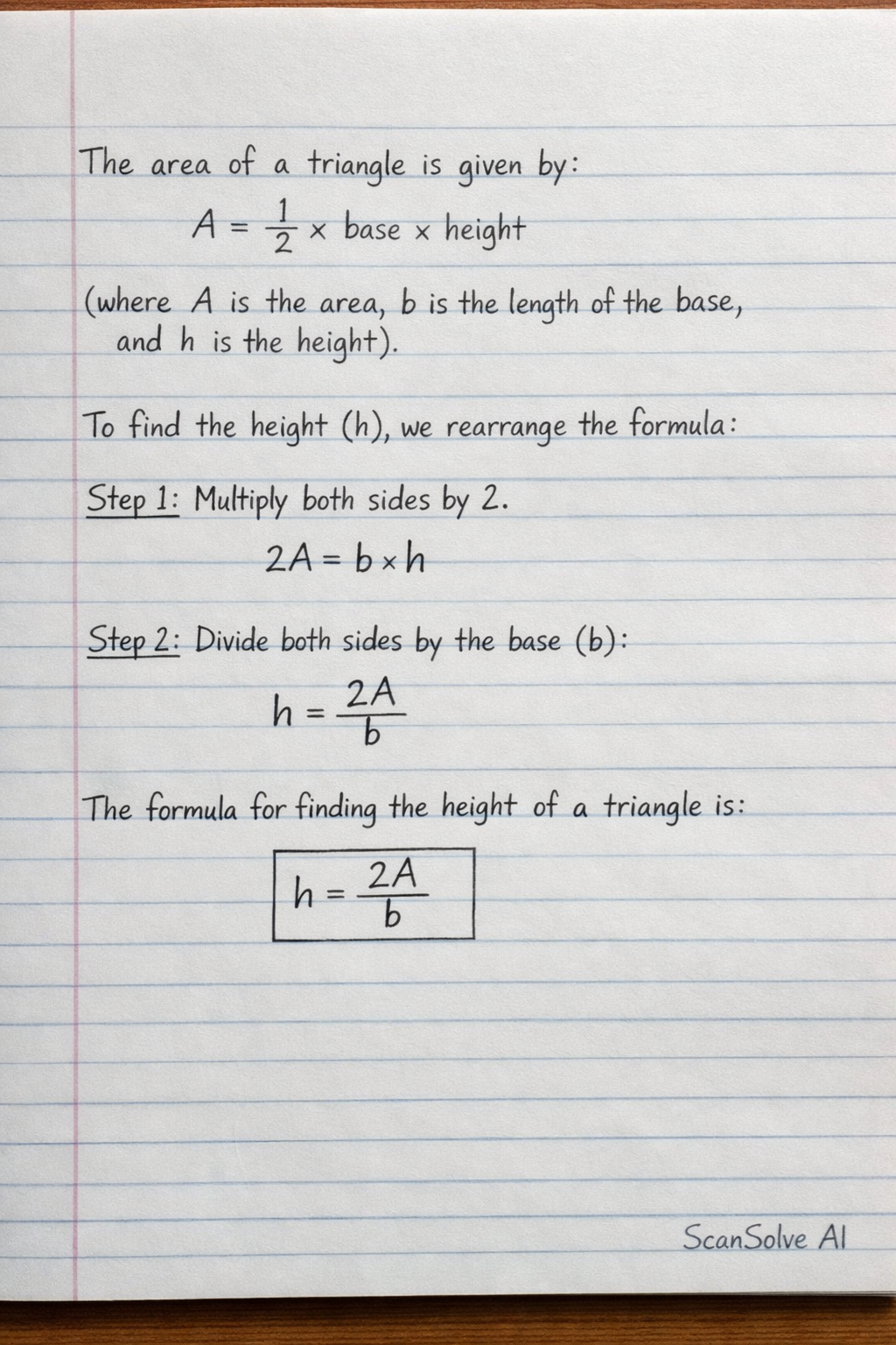 What is the formula for finding the height of a triangle