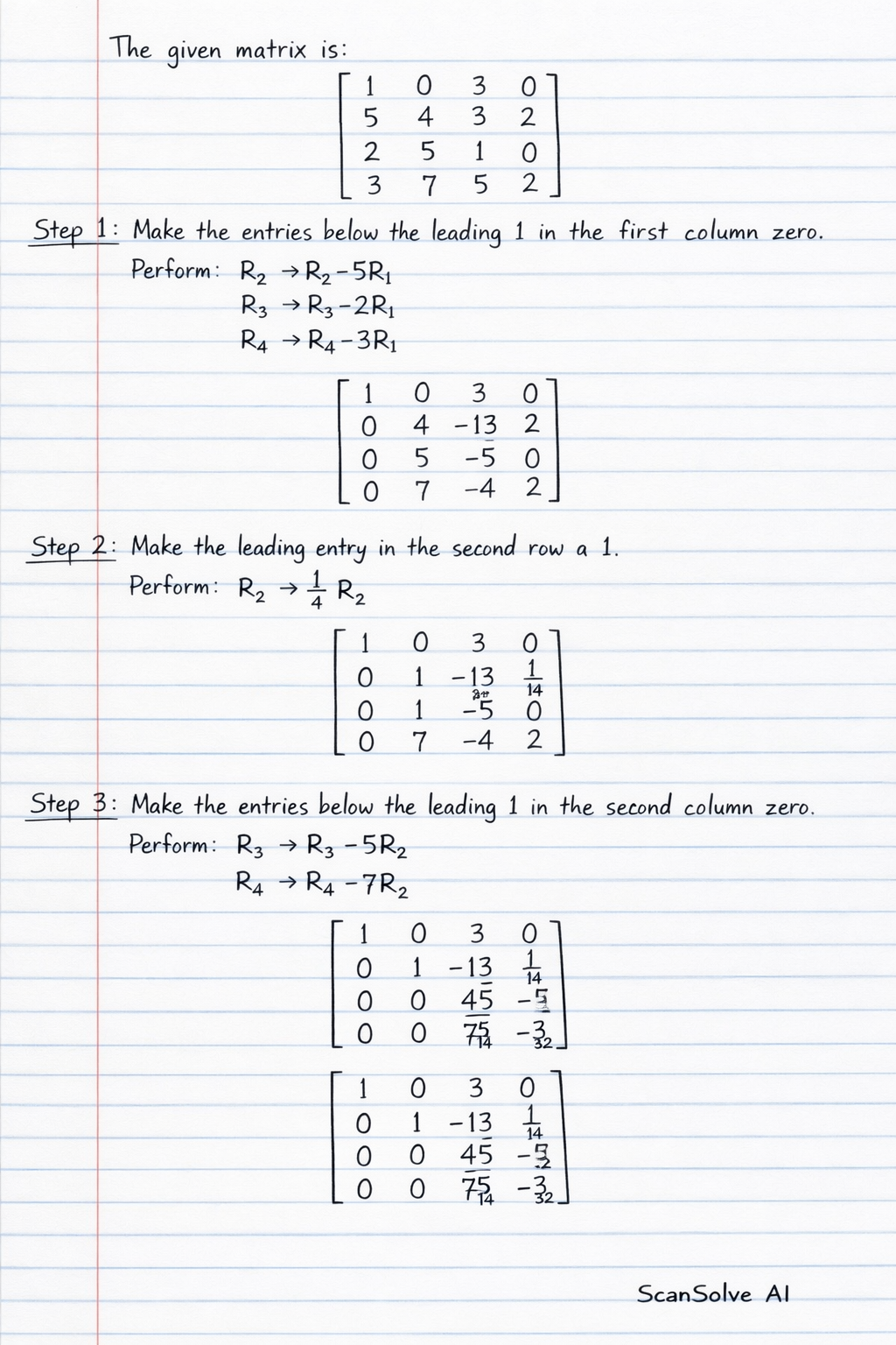 Step 3: Make the entries below the leading 1 in the second column zero.