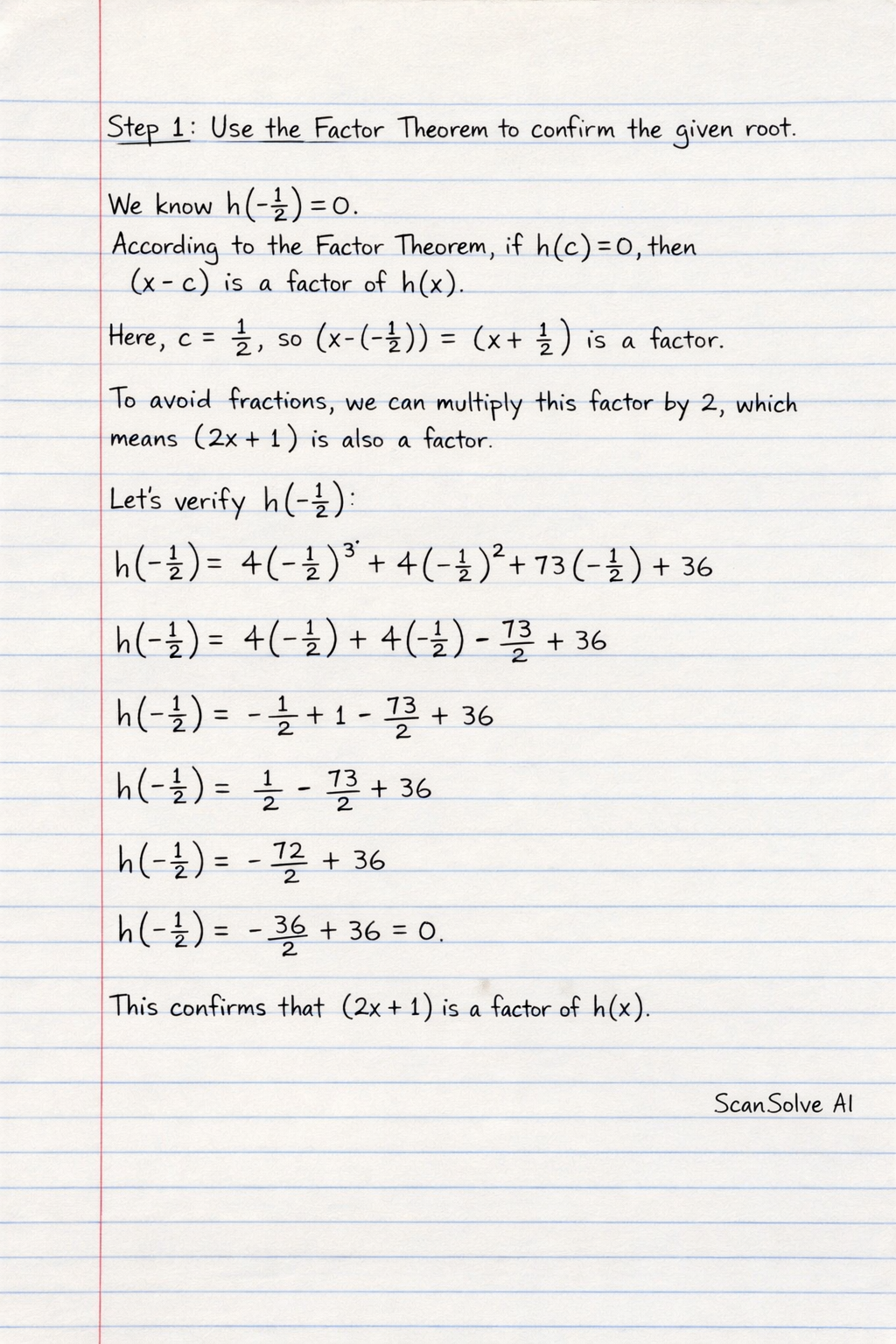 Step 1: Use the Factor Theorem to confirm the given root.